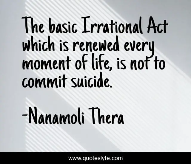 This page presents the quote "The basic Irrational Act which is renewed every moment of life, is not to commit suicide.". Author of this quote is Nanamoli Thera. .