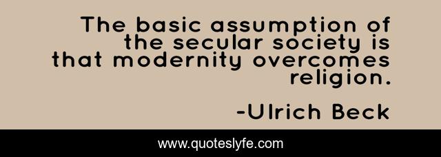 This page presents the quote "The basic assumption of the secular society is that modernity overcomes religion.". Author of this quote is Ulrich Beck. This quote is about society, modernity, secular,.