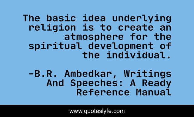 This page presents the quote "The basic idea underlying religion is to create an atmosphere for the spiritual development of the individual.". Author of this quote is B.R. Ambedkar, Writings And Speeches: A Ready Reference Manual. This quote is about religion, spiritual-development, individual,.