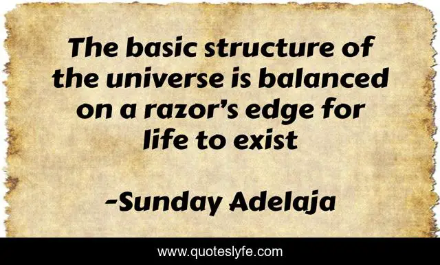 This page presents the quote "The basic structure of the universe is balanced on a razor’s edge for life to exist". Author of this quote is Sunday Adelaja. This quote is about universe, life, balance, exist, structure,.