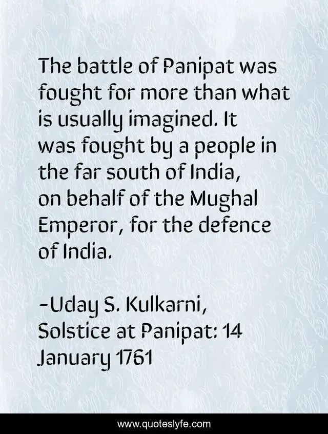 "Uday S. Kulkarni, Solstice at Panipat: 14 January 1761 Quotes." Quoteslyfe.com, 2025. Sat. 06 Dec. 2025. <https://www.quoteslyfe.com/quote/The-battle-of-Panipat-was-fought-for-249213>.