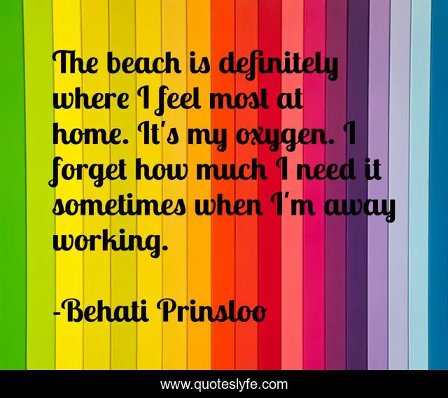 This page presents the quote "The beach is definitely where I feel most at home. It's my oxygen. I forget how much I need it sometimes when I'm away working.". Author of this quote is Behati Prinsloo. This quote is about beach, forget, working,.