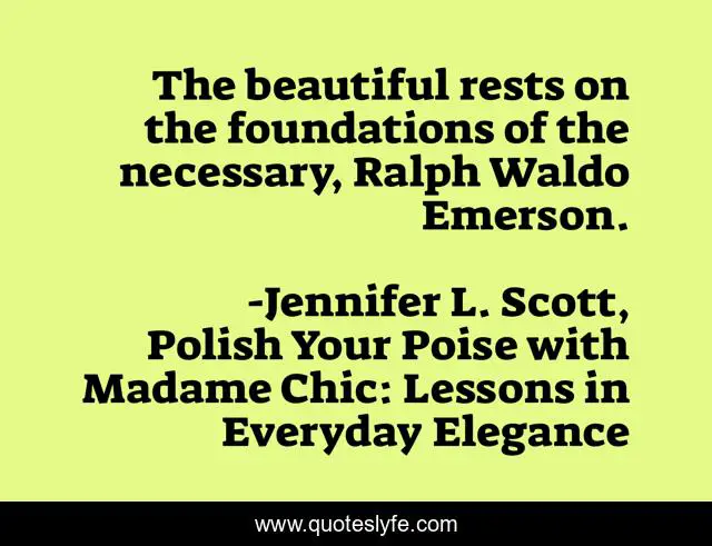 This page presents the quote "The beautiful rests on the foundations of the necessary, Ralph Waldo Emerson.". Author of this quote is Jennifer L. Scott, Polish Your Poise with Madame Chic: Lessons in Everyday Elegance. This quote is about poise, beauty,.