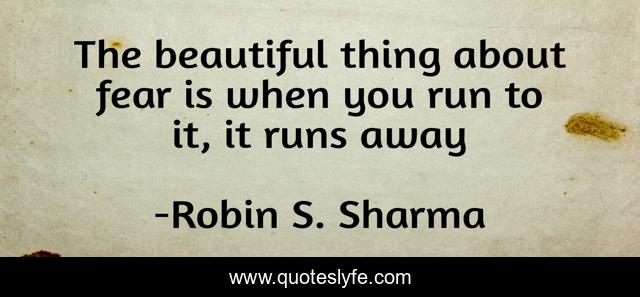 This page presents the quote "The beautiful thing about fear is when you run to it, it runs away". Author of this quote is Robin S. Sharma. .