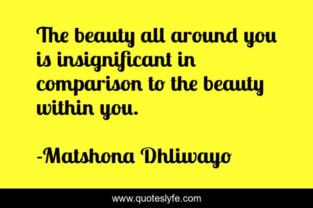 "Matshona Dhliwayo Quotes." Quoteslyfe.com, 2025. Tue. 09 Dec. 2025. <https://www.quoteslyfe.com/quote/The-beauty-all-around-you-is-insignificant-58350>.