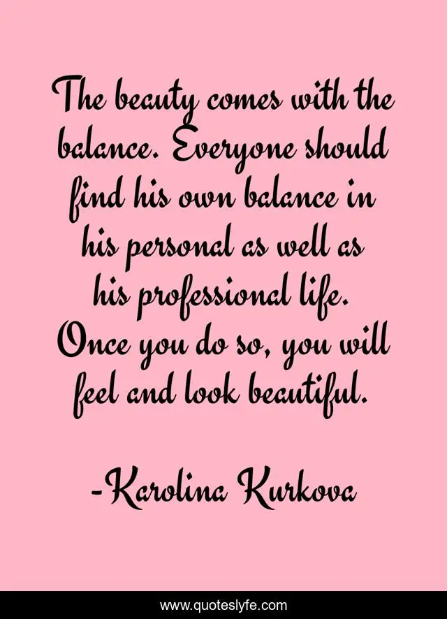 This page presents the quote "The beauty comes with the balance. Everyone should find his own balance in his personal as well as his professional life. Once you do so, you will feel and look beautiful.". Author of this quote is Karolina Kurkova. This quote is about beautiful, life, balance,.