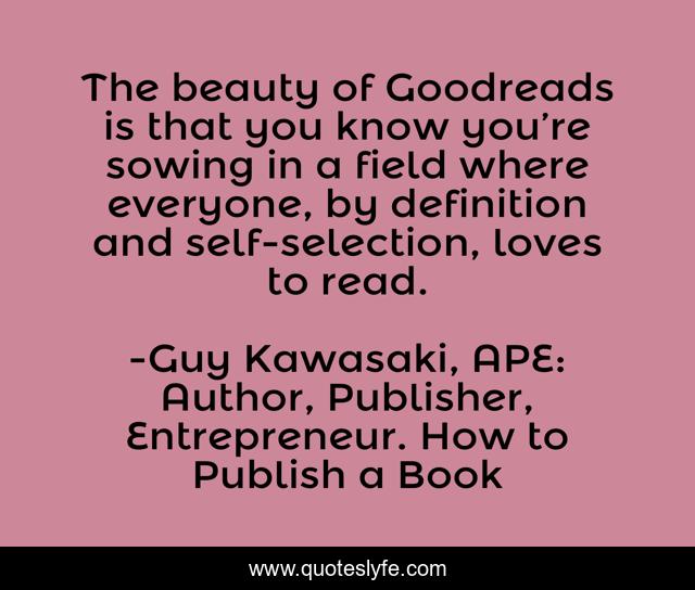 "Guy Kawasaki, APE: Author, Publisher, Entrepreneur. How to Publish a Book Quotes." Quoteslyfe.com, 2025. Tue. 09 Dec. 2025. <https://www.quoteslyfe.com/quote/The-beauty-of-Goodreads-is-that-you-227102>.