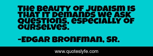 This page presents the quote "The beauty of Judaism is that it demands we ask questions, especially of ourselves.". Author of this quote is Edgar Bronfman, Sr.. This quote is about ask, judaism, questions,.