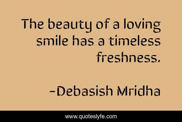 This page presents the quote "The beauty of a loving smile has a timeless freshness.". Author of this quote is Debasish Mridha. This quote is about loving-smile, timeless-freshness, philosophy, debasish-mridha, quotes, beauty-of-a-loving-smile, beautiful-smile, inspirational, smile,.