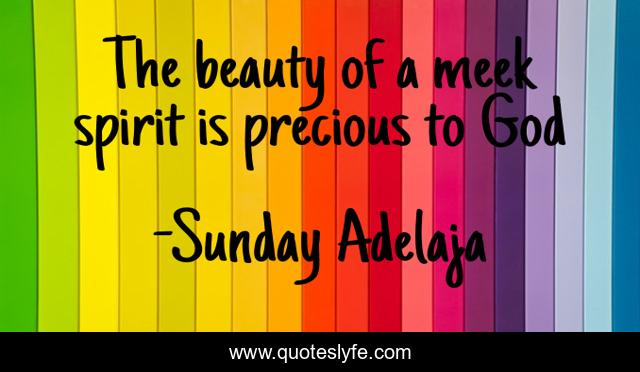 This page presents the quote "The beauty of a meek spirit is precious to God". Author of this quote is Sunday Adelaja. This quote is about god, precious, spirit, beauty, meekness,.