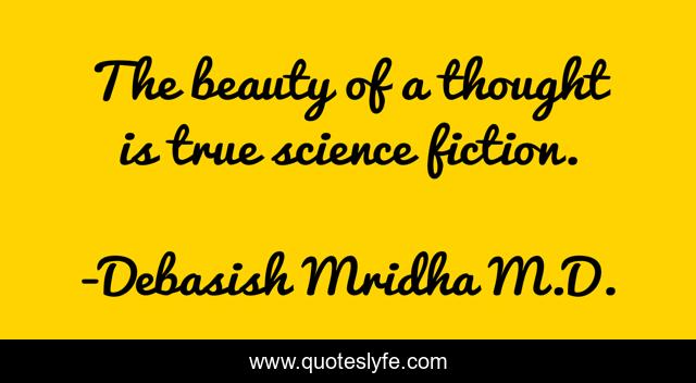 This page presents the quote "The beauty of a thought is true science fiction.". Author of this quote is Debasish Mridha M.D.. This quote is about beauty-of-thought, philosophy, debasish-mridha, science-fiction, thought, quotes, inspirational, enthusiasm, debasish-mridha-m-d,.