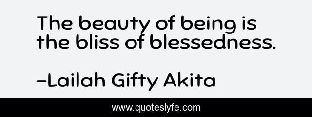 This page presents the quote "The beauty of being is the bliss of blessedness.". Author of this quote is Lailah Gifty Akita. This quote is about wise-words, blessedness, beauty, inspiration,.