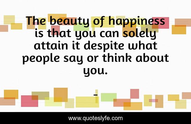 This page presents the quote "The beauty of happiness is that you can solely attain it despite what people say or think about you.". Author of this quote is . This quote is about edmond-mbiaka, living-happily, happiness, achieving-happiness,.