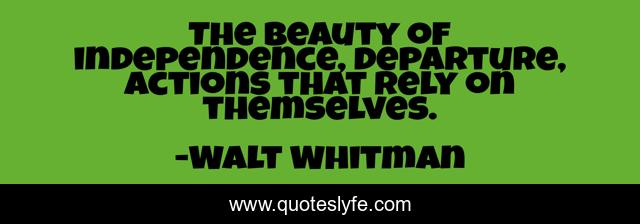 This page presents the quote "The beauty of independence, departure, actions that rely on themselves.". Author of this quote is Walt Whitman. This quote is about beauty, departure, actions,.