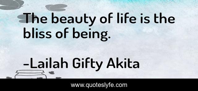 This page presents the quote "The beauty of life is the bliss of being.". Author of this quote is Lailah Gifty Akita. This quote is about being, life-philosophy, life, wellbeing, beauty,.