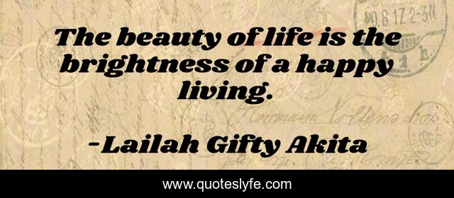 This page presents the quote "The beauty of life is the brightness of a happy living.". Author of this quote is Lailah Gifty Akita. This quote is about shine-your-light, life, happy,.