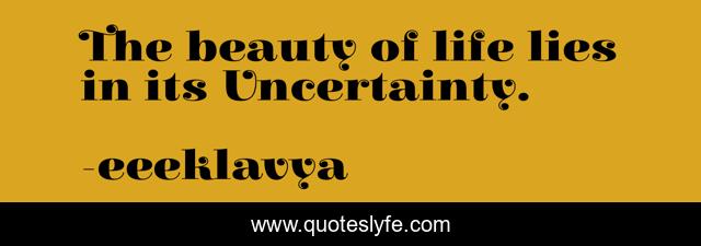 This page presents the quote "The beauty of life lies in its Uncertainty.". Author of this quote is eeeklavya. This quote is about enthusiasm, inspirational,.