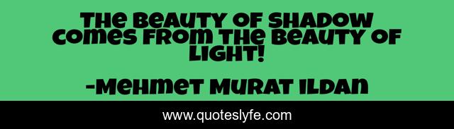 This page presents the quote "The beauty of shadow comes from the beauty of light!". Author of this quote is Mehmet Murat ildan. This quote is about shadows, beauty, murat-ildan, light, beauty-of-light, turkish-playwrights, turkish-writers, turkish-thinkers, shadow,.