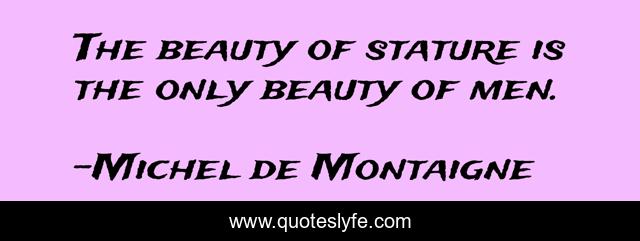 This page presents the quote "The beauty of stature is the only beauty of men.". Author of this quote is Michel de Montaigne. .