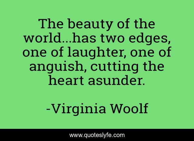 This page presents the quote "The beauty of the world...has two edges, one of laughter, one of anguish, cutting the heart asunder.". Author of this quote is Virginia Woolf. This quote is about enthusiasm, beauty, inspirational,.