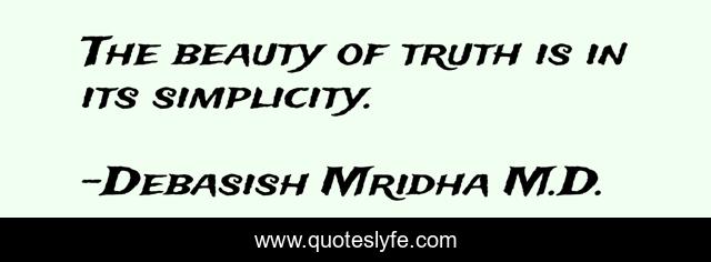 This page presents the quote "The beauty of truth is in its simplicity.". Author of this quote is Debasish Mridha M.D.. This quote is about simplicity, beauty-of-truth, beauty, inspirational, philosophy, debasish-mridha, quotes, truth, enthusiasm,.