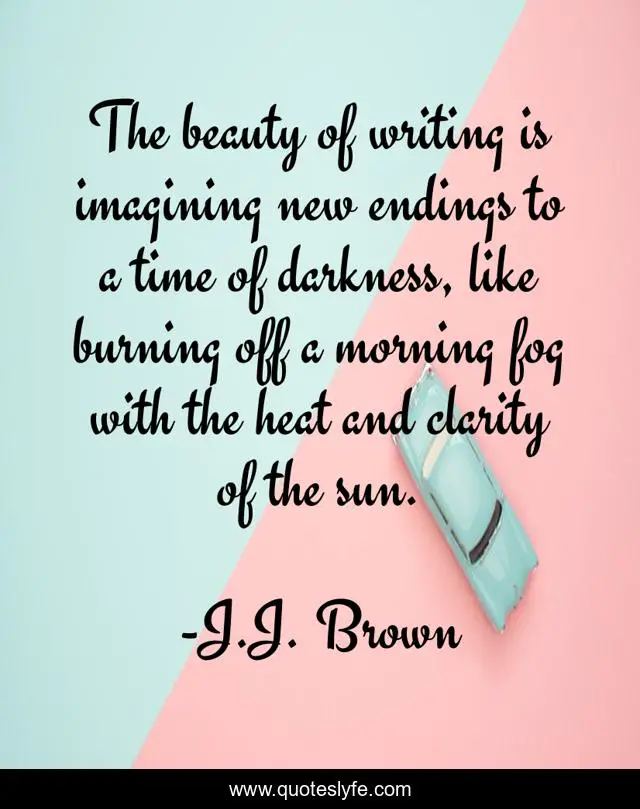 This page presents the quote "The beauty of writing is imagining new endings to a time of darkness, like burning off a morning fog with the heat and clarity of the sun.". Author of this quote is J.J. Brown. This quote is about enthusiasm, writing-life, inspirational, writing,.