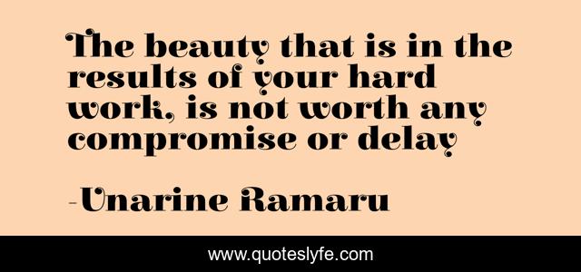 This page presents the quote "The beauty that is in the results of your hard work, is not worth any compromise or delay". Author of this quote is Unarine Ramaru. This quote is about hard-work, drive, success, results,.