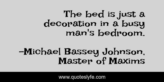 "Michael Bassey Johnson, Master of Maxims Quotes." Quoteslyfe.com, 2025. Tue. 09 Dec. 2025. <https://www.quoteslyfe.com/quote/The-bed-is-just-a-decoration-in-197909>.