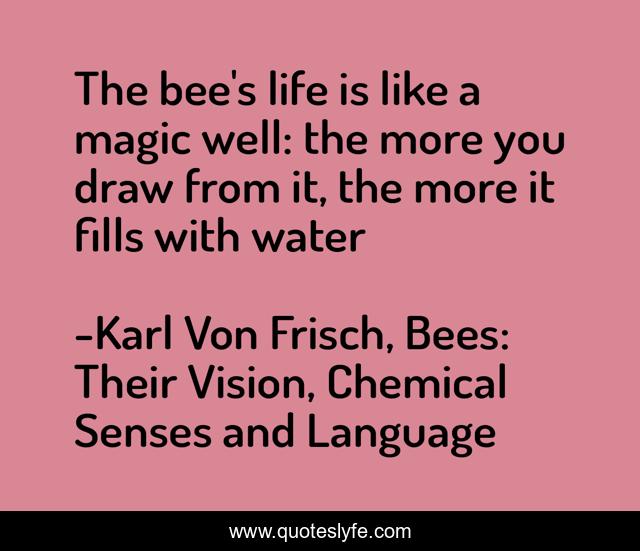 This page presents the quote "The bee's life is like a magic well: the more you draw from it, the more it fills with water". Author of this quote is Karl Von Frisch, Bees: Their Vision, Chemical Senses and Language. This quote is about earth, bees, nature,.