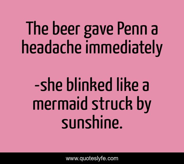 "she blinked like a mermaid struck by sunshine. Quotes." Quoteslyfe.com, 2025. Fri. 05 Dec. 2025. <https://www.quoteslyfe.com/quote/The-beer-gave-Penn-a-headache-immediately-101214>.