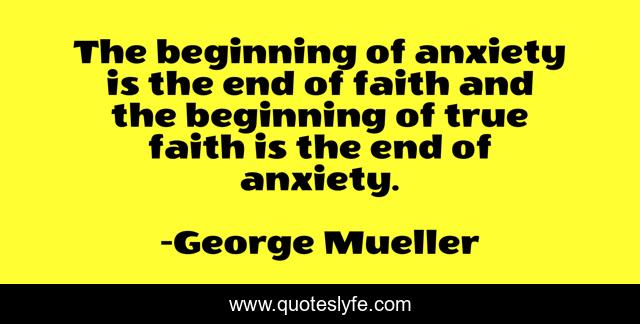 This page presents the quote "The beginning of anxiety is the end of faith and the beginning of true faith is the end of anxiety.". Author of this quote is George Mueller. .