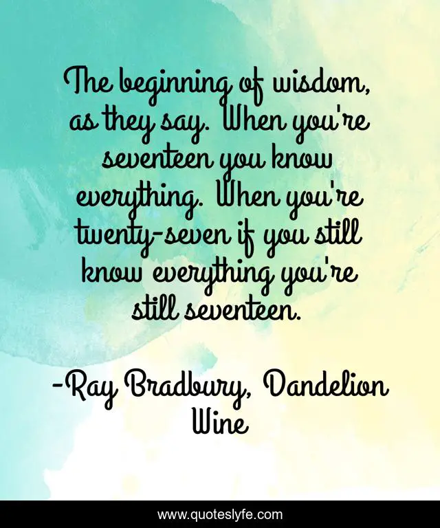 "Ray Bradbury, Dandelion Wine Quotes." Quoteslyfe.com, 2025. Sun. 07 Dec. 2025. <https://www.quoteslyfe.com/quote/The-beginning-of-wisdom-as-they-say-12462>.