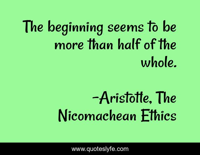 "Aristotle, The Nicomachean Ethics Quotes." Quoteslyfe.com, 2025. Fri. 05 Dec. 2025. <https://www.quoteslyfe.com/quote/The-beginning-seems-to-be-more-than-233077>.