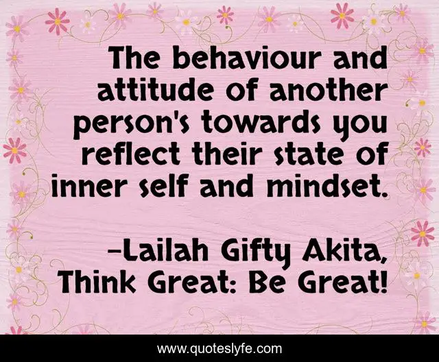 "Lailah Gifty Akita, Think Great: Be Great! Quotes." Quoteslyfe.com, 2025. Fri. 05 Dec. 2025. <https://www.quoteslyfe.com/quote/The-behaviour-and-attitude-of-another-person-73826>.