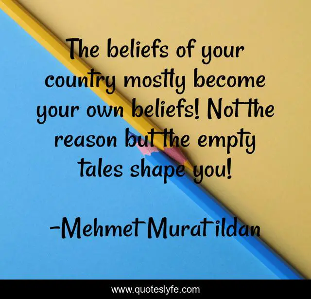 This page presents the quote "The beliefs of your country mostly become your own beliefs! Not the reason but the empty tales shape you!". Author of this quote is Mehmet Murat ildan. .