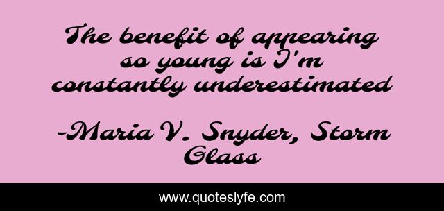 "Maria V. Snyder, Storm Glass Quotes." Quoteslyfe.com, 2025. Sat. 06 Dec. 2025. <https://www.quoteslyfe.com/quote/The-benefit-of-appearing-so-young-is-158757>.