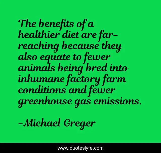 "Michael Greger Quotes." Quoteslyfe.com, 2025. Mon. 08 Dec. 2025. <https://www.quoteslyfe.com/quote/The-benefits-of-a-healthier-diet-are-309015>.