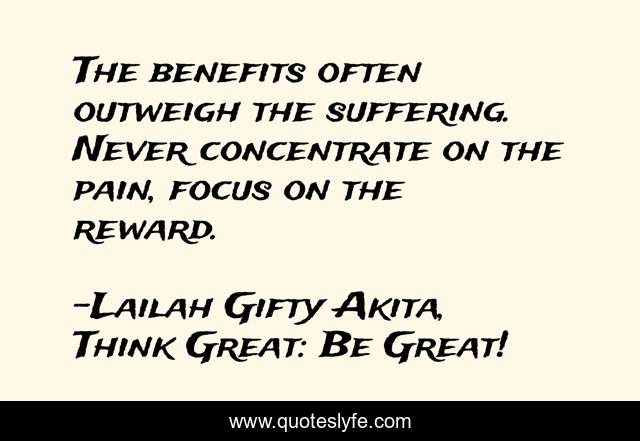 "Lailah Gifty Akita, Think Great: Be Great! Quotes." Quoteslyfe.com, 2025. Mon. 08 Dec. 2025. <https://www.quoteslyfe.com/quote/The-benefits-often-outweigh-the-suffering-Never-98751>.