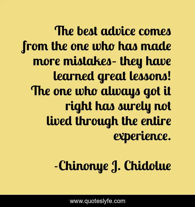 "Chinonye J. Chidolue Quotes." Quoteslyfe.com, 2025. Mon. 08 Dec. 2025. <https://www.quoteslyfe.com/quote/The-best-advice-comes-from-the-one-158654>.