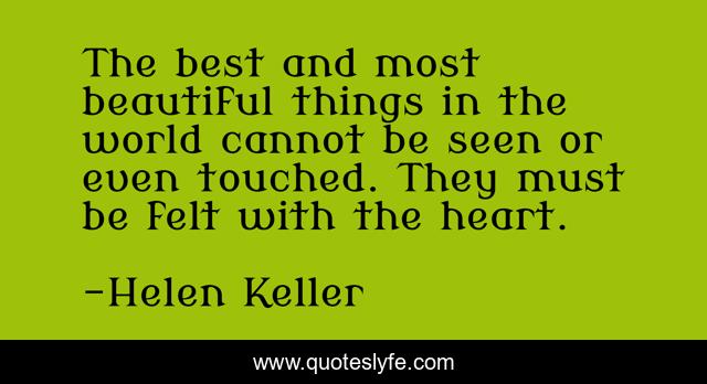 This page presents the quote "The best and most beautiful things in the world cannot be seen or even touched. They must be felt with the heart.". Author of this quote is Helen Keller. This quote is about emotions, feelings,.