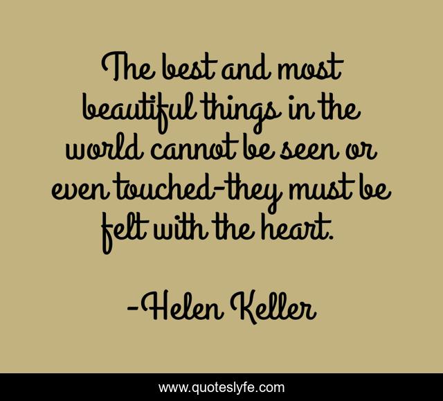 "Helen Keller Quotes." Quoteslyfe.com, 2025. Fri. 05 Dec. 2025. <https://www.quoteslyfe.com/quote/The-best-and-most-beautiful-things-in-263400>.