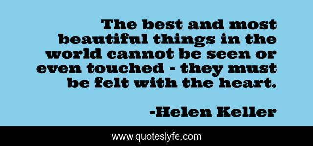 "Helen Keller Quotes." Quoteslyfe.com, 2026. Sun. 11 Jan. 2026. <https://www.quoteslyfe.com/quote/The-best-and-most-beautiful-things-in-283852>.