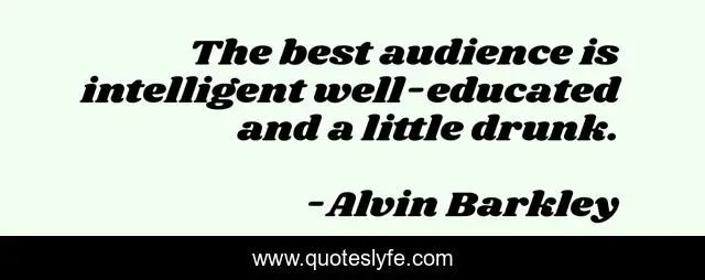 This page presents the quote "The best audience is intelligent well-educated and a little drunk.". Author of this quote is Alvin Barkley. This quote is about acting, theatre,.