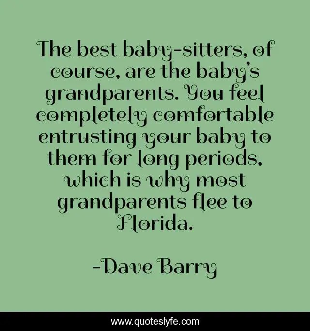 This page presents the quote "The best baby-sitters, of course, are the baby’s grandparents. You feel completely comfortable entrusting your baby to them for long periods, which is why most grandparents flee to Florida.". Author of this quote is Dave Barry. This quote is about relationships, family, grandparents, grandfather, grandmother, babysitter, babies, baby, trust,.
