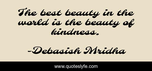 This page presents the quote "The best beauty in the world is the beauty of kindness.". Author of this quote is Debasish Mridha. This quote is about life, education, love, knowledge, beauty, inspirational, intelligence, philosophy, wisdom,.
