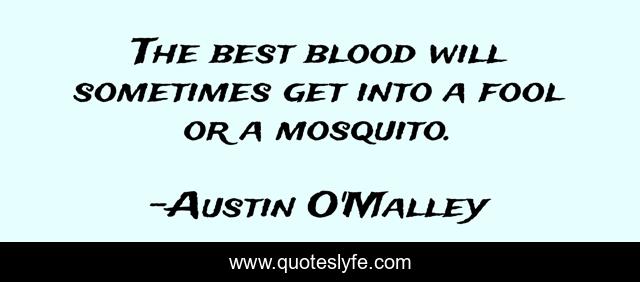 This page presents the quote "The best blood will sometimes get into a fool or a mosquito.". Author of this quote is Austin O'Malley. .