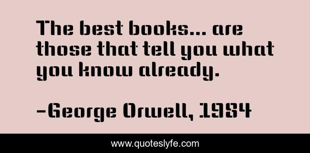 This page presents the quote "The best books... are those that tell you what you know already.". Author of this quote is George Orwell, 1984. This quote is about books, reading,.