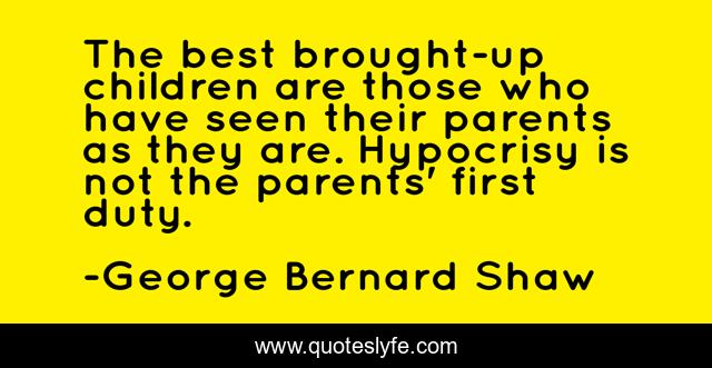This page presents the quote "The best brought-up children are those who have seen their parents as they are. Hypocrisy is not the parents' first duty.". Author of this quote is George Bernard Shaw. .