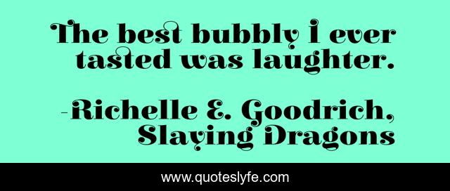 This page presents the quote "The best bubbly I ever tasted was laughter.". Author of this quote is Richelle E. Goodrich, Slaying Dragons. This quote is about bubbly, richelle-e-goodrich, richelle, laugh, richelle-goodrich, laughter,.