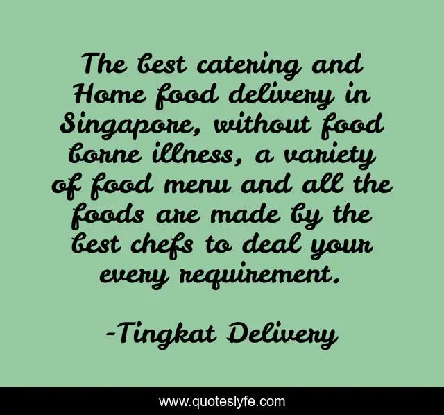 This page presents the quote "The best catering and Home food delivery in Singapore, without food borne illness, a variety of food menu and all the foods are made by the best chefs to deal your every requirement.". Author of this quote is Tingkat Delivery. This quote is about home, food-delivery-in-singapore,.